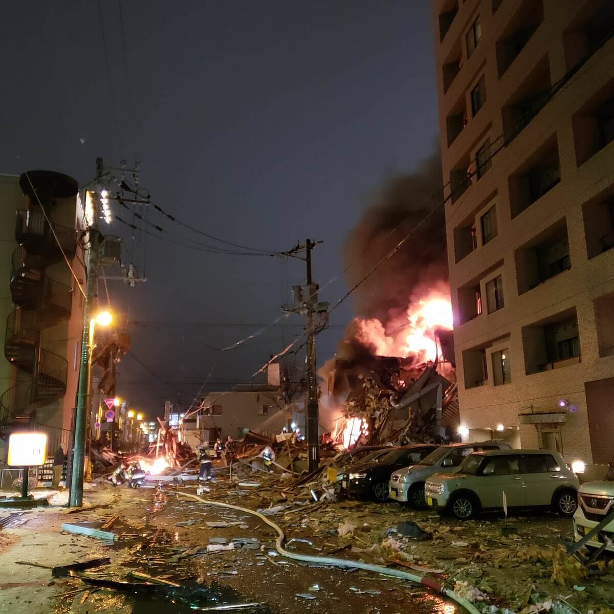 アパマンショップ平岸駅前店等が入る雑居ビルで爆発が発生し、ビルは木っ端微塵に吹き飛び、隣接する居酒屋「海さくら」が倒壊炎上しました。