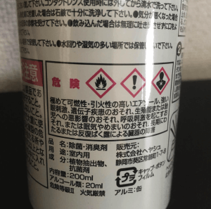 ヘアシュの成分を見ると、プロパンガスではなくジメチルエーテル (DME) でした。スプレー缶にはよく使用されるものですが、爆発範囲(大気中に存在した場合に着火源があると爆発する濃度)が3.4~27vol%と、プロパンガスよりも広く危険な成分です。ちなみにプロパンガスの爆発範囲は2.1~9.5%になります。