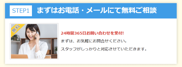 見積り、相談は電話かメールから受付けています。特にメールなら、24時間365日受付可能で、1分程度で完了する必要事項の入力をするだけで、すぐにやり取りを開始できるため忙しい方にもおすすめです。