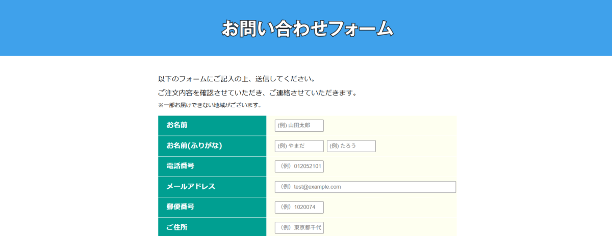 まずは上から順に、名前、電話番号、メールアドレス、住所の入力をします。