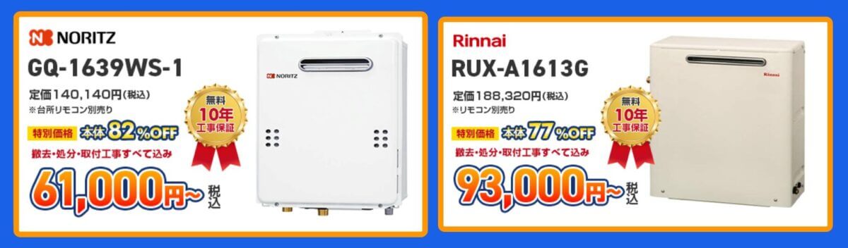 給湯器交換業者を詳細比較したい方はこちらから↓↓