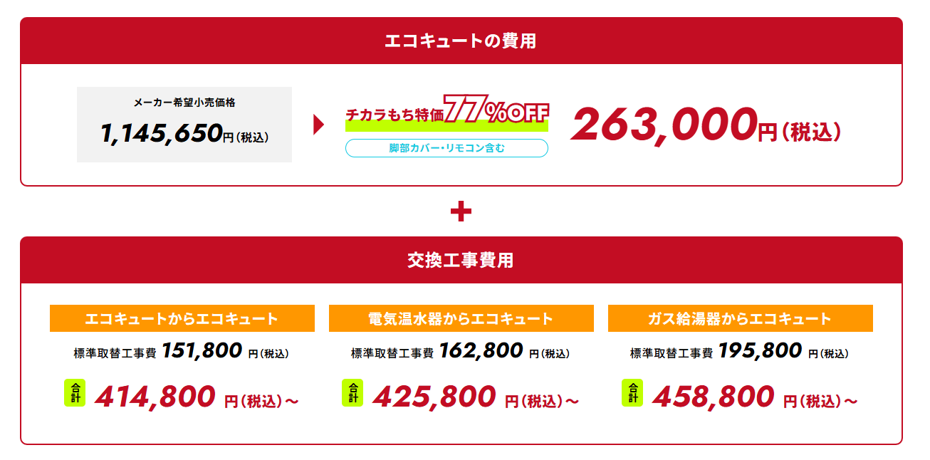 - チカラもちは給湯省エネ事業者に登録しているので、対象商品はエコキュートの補助金が受けられる
