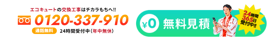 次に、エコキュートの交換の場合は、上部右端「\0 無料見積」ボタンをクリック、給湯器のページの場合は「24時間365日受付中! 無料見積」のボタンをクリックします。