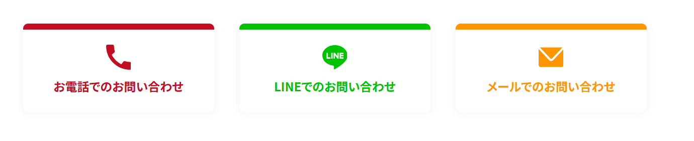 問い合わせ方法を選択します。「お電話でのお問い合わせ」「LINEでのお問い合わせ」「メールでのお問い合わせ」が選択できるので、右端の「メールでのお問い合わせ」を選択します。