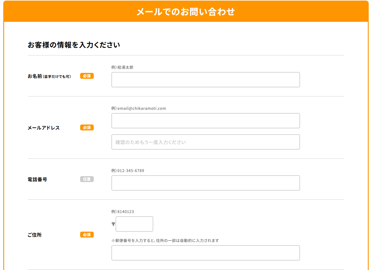 続いて、連絡先の入力を行います。上から順に「名前」「メールアドレス」「電話番号」「住所」を入力します。