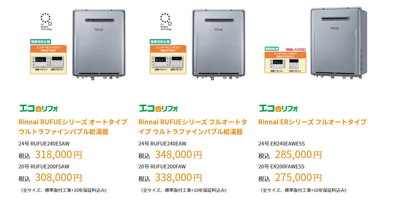- 給湯器・エコキュート主要機種の工事に対応!ノーリツやリンナイはじめ主要メーカーの工事に対応しています。