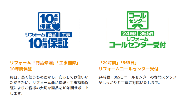 - 全ての商品に10年保証がつく!あわせて、工事の保証も10年つくので長期的な目線で見ても安心です。