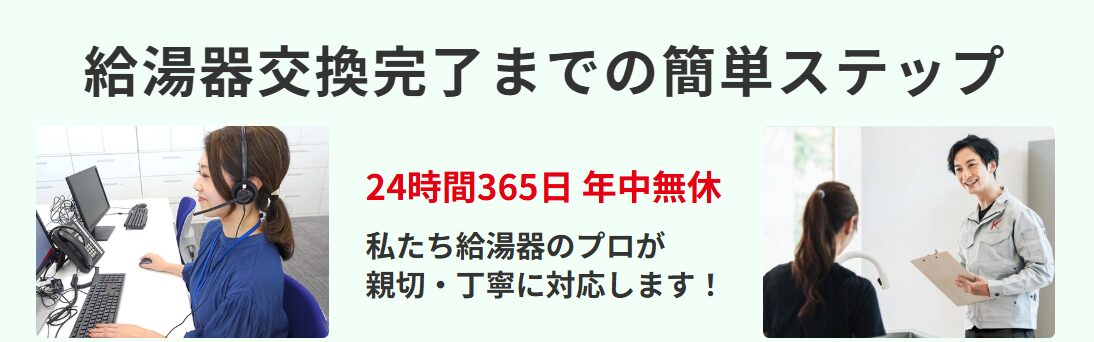 • 工事のみの依頼は不可。給湯器をすでに手配している場合は、工事のみの受付は不可です。