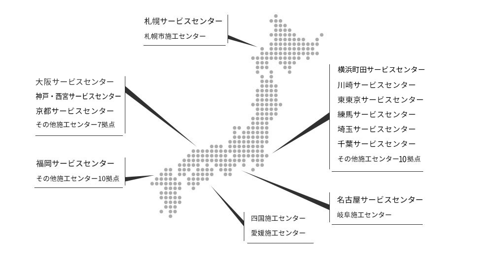 ・【サービス対応エリア】47都道府県、日本全国で対応が可能です。また、拠点があるエリア付近では当日、翌日に工事が可能なスピード対応の受付をしています。