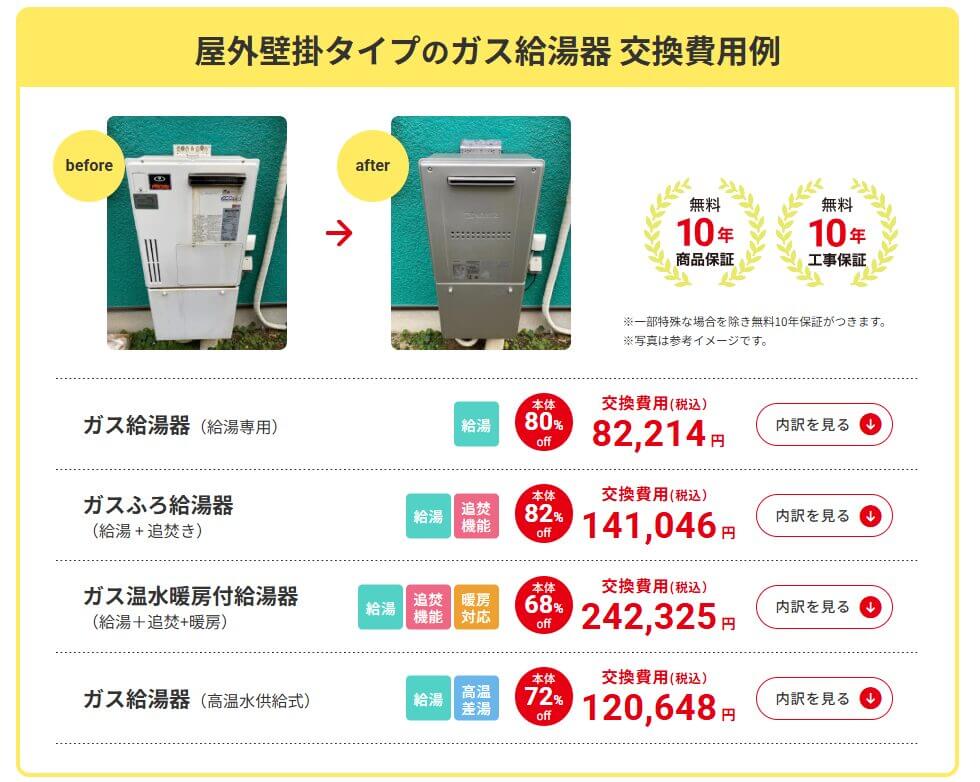 メーカーでは給湯器の耐用年数をおよそ8~10年と想定している事から、10年間の商品保証・工事保証で、その間をカバーしております。