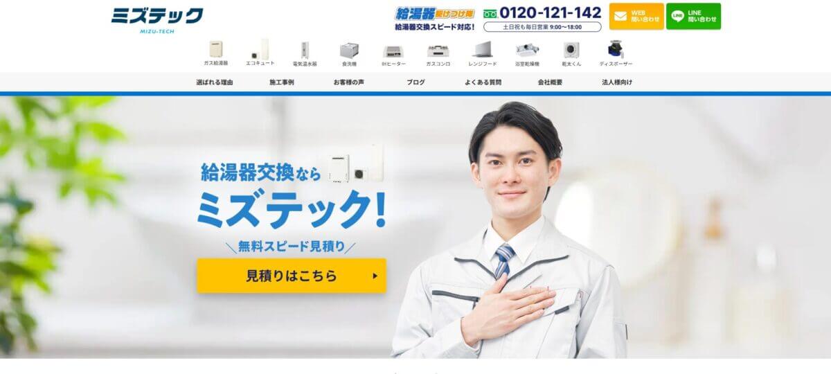 給湯器駆けつけ隊(ミズテック)は24時間365日いつでも受付可能な上、都市部を中心に12拠点の営業所や施工センターがあるので、最短30分で駆けつけてくれるスピードは他の企業に比べても非常にスピーディな対応が期待できます。