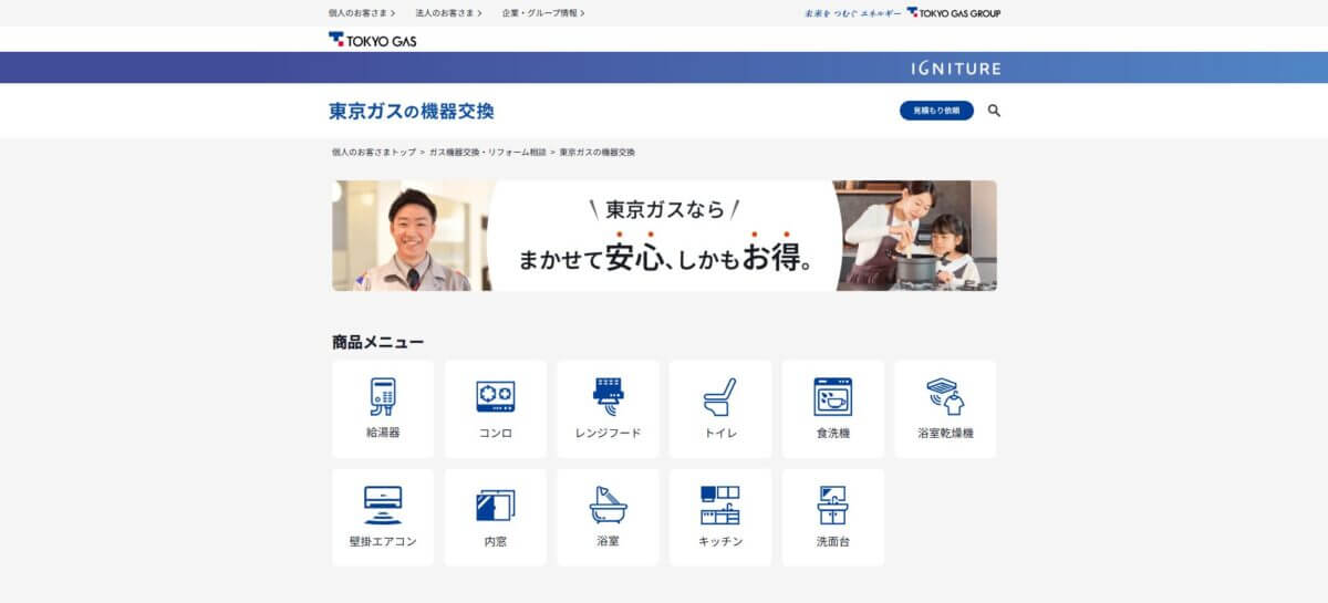 | 取扱メーカー | 給湯器:ノーリツ、リンナイ、パロマ、パーパス、コロナ エコキュート:三菱、ダイキン、日立、パナソニック、東芝 |