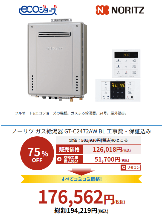 | 1位 | ノーリツ | GT-C2472AW BL | 総額 194,219円(税込) |