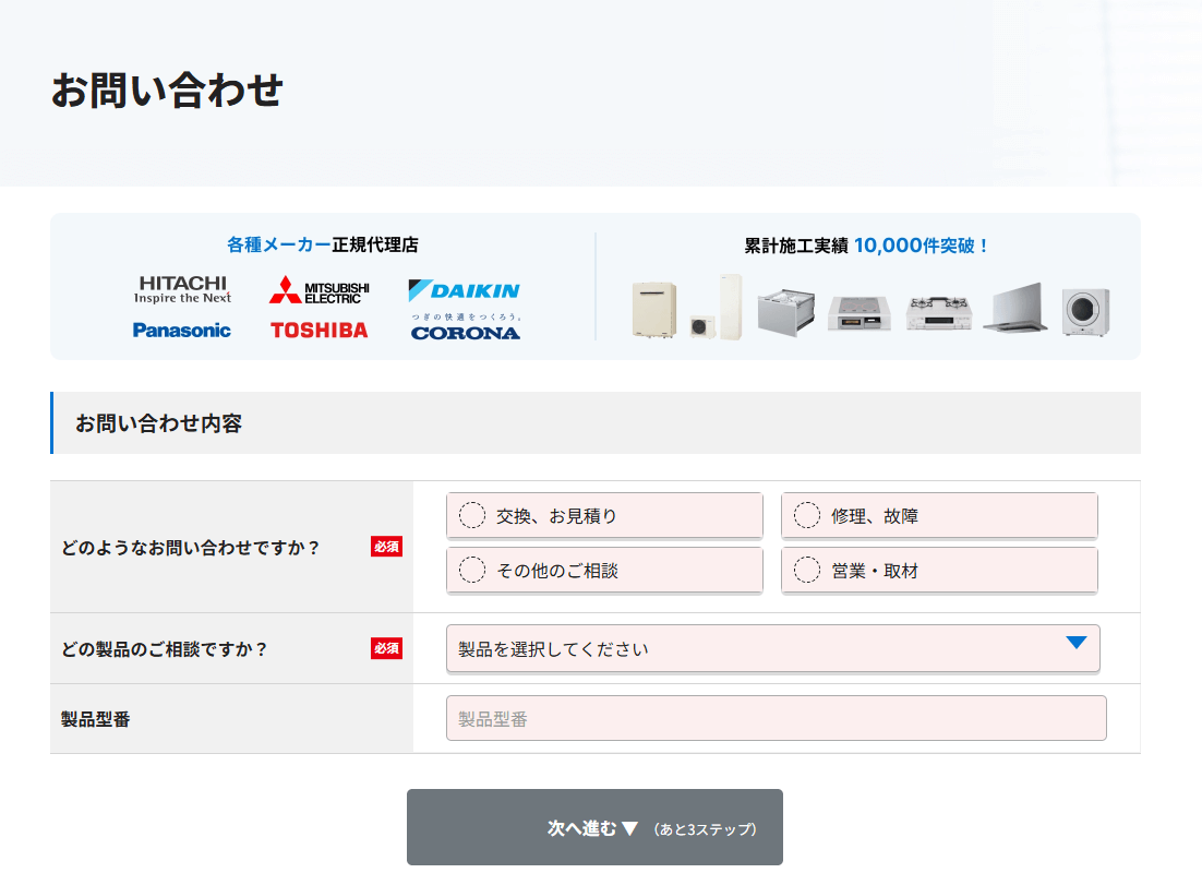 - 無料見積依頼は1分でできる!連絡先と使用中の給湯器の情報を記入するだけです。