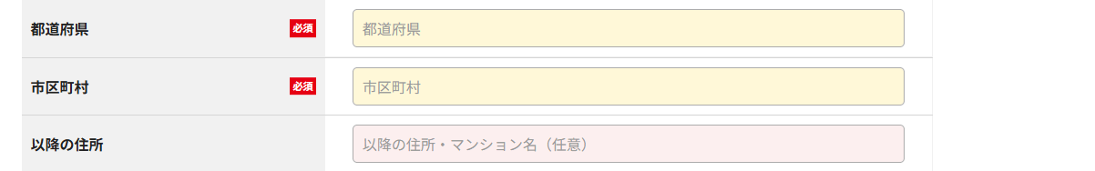 郵便番号まで入力すると住所の入力欄が表示されるので、続けて入力してください。