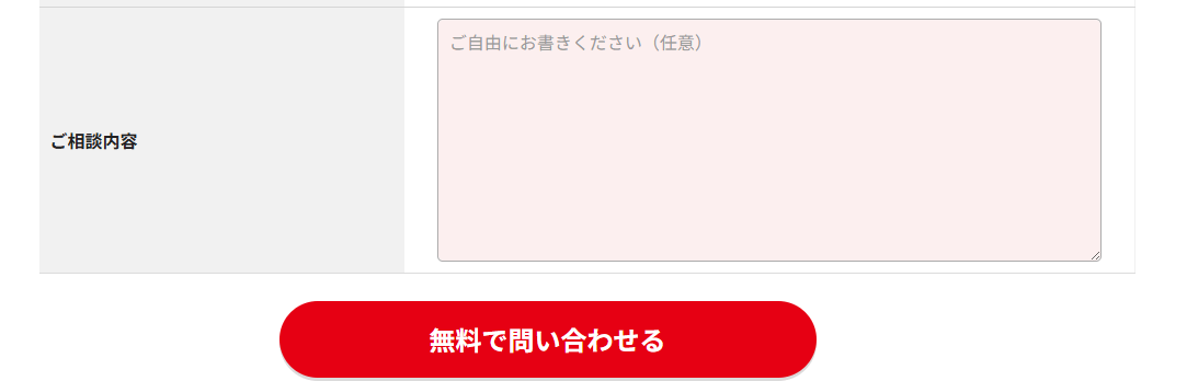 最後に相談内容を入力します。すべて入力が完了したら、一番下の赤いボタン「無料で問い合わせる」を押します。