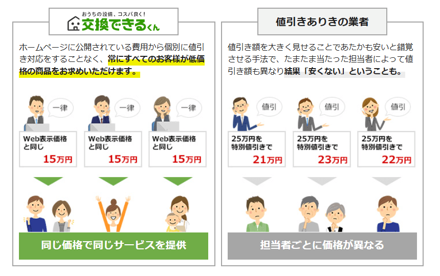 交換できるくんは「最強のコスパ宣言!」「お手軽・スピーディ!」をキャッチフレーズにして活動しています。交換できるくんとは、おうちの設備を迅速に安く交換してくれる施工会社になります。