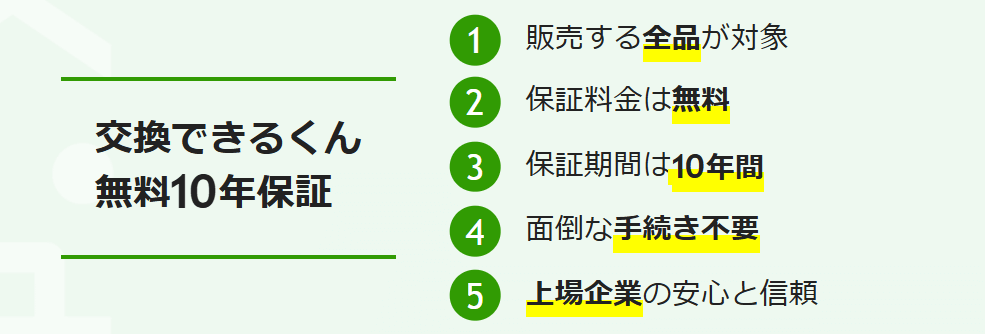 • 全ての商品に10年保証がつく!あわせて、工事の保証も10年つくので長期的な目線で見ても安心です。