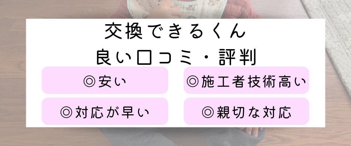 一部の職人や、事務員の対応が未熟な場合があるのも事実です。こういった声に対して、交換できるくんからは改善していくと返信しているものも見られたので、今後の企業努力にも期待したいところです。