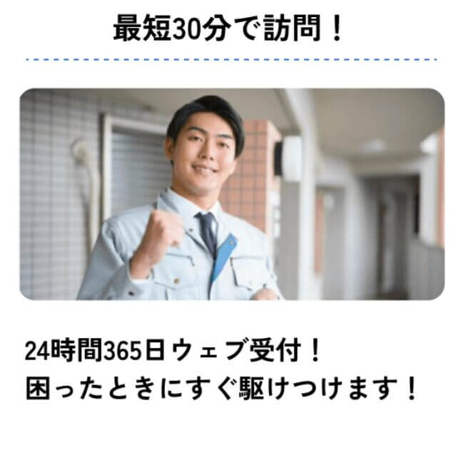 お急ぎの場合でも最短30分で駆けつけてくれて現地調査をしてくれるのも魅力的です。