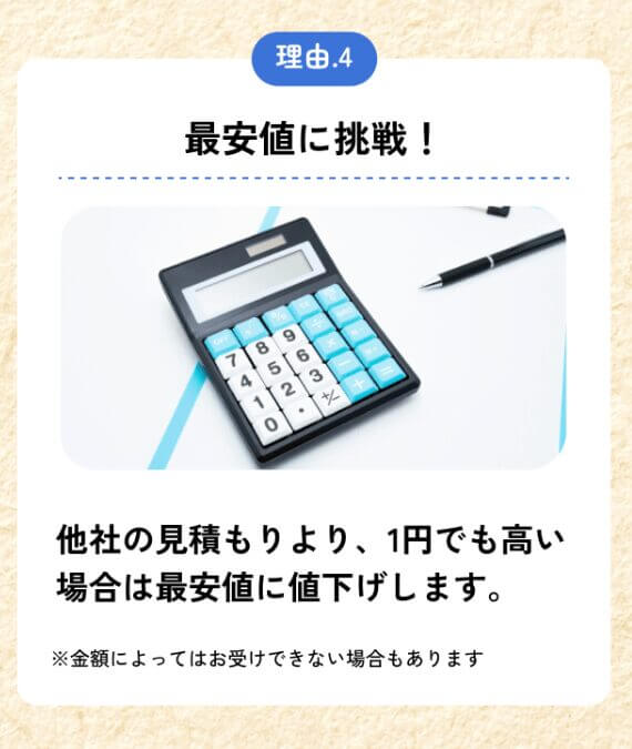 - 見積り表示が分かりやすい!素人でも分かりやすい見積り表示で不安感少なく契約ができます。