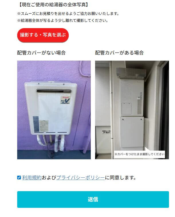 - 無料見積依頼は1分でできる!連絡先と使用中の給湯器の情報を記入するだけです。