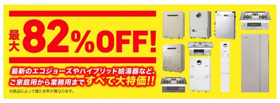 | その他 | 取扱い商品:ガス給湯器、エコキュート、IHヒーター、ガスコンロ、レンジフード、浴室乾燥機、乾太くん、風呂釜 有資格者の施工:ガス機器設置スペシャリスト、給水装置工事主任技術者、簡易内管施工士、液化石油ガス設備士、石油機器技術管理士、ガス可とう管接続工事監督者、第二種電気工事士など 正規販売店:ノーリツ正規販売店、リンナイ正規販売店、日立正規販売店 |