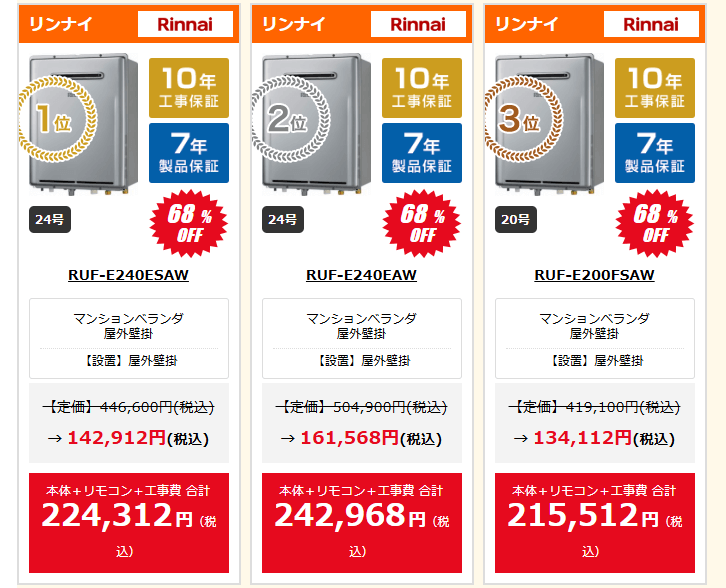 給湯器交換業者を詳細比較したい方はこちらから↓↓