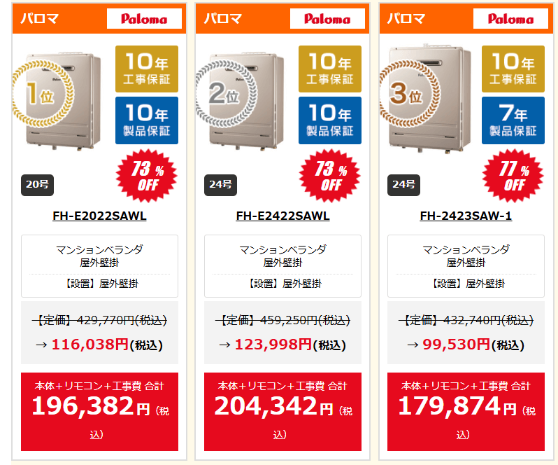 ②HP内の価格は本体価格+工事にかかる費用がすべてコミコミの表示