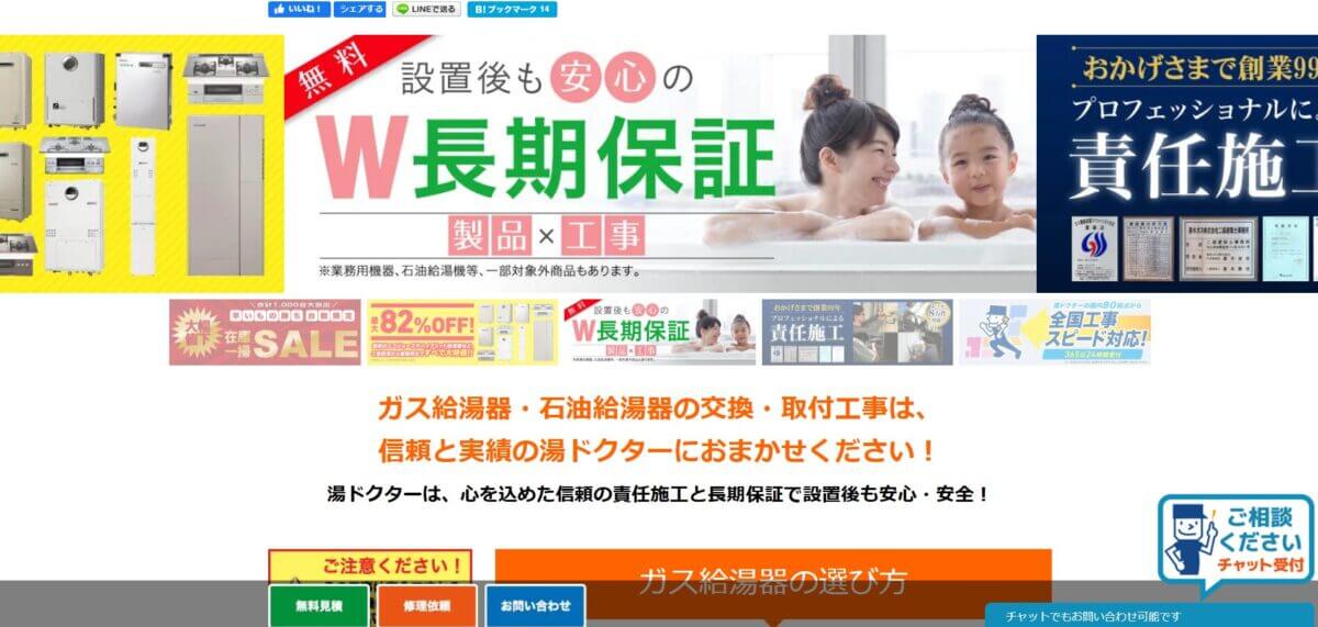 湯ドクターは「安心・安全・責任施工」「無料W長期保証」をキャッチフレーズにして活動しています。湯ドクターとは、給湯器を迅速に安く交換してくれる施工会社になります。