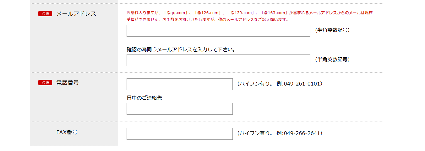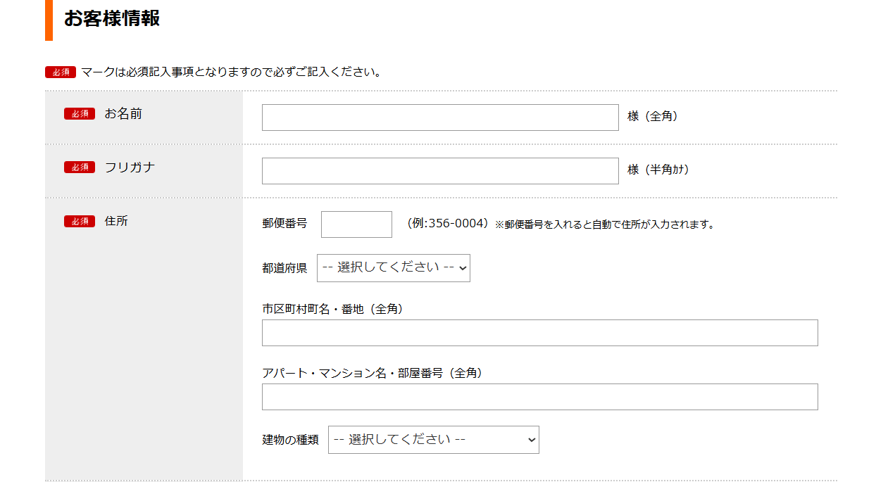 その後、希望商品や要望、質問を入力できる欄が表示されるので、必要に応じて記入してください。