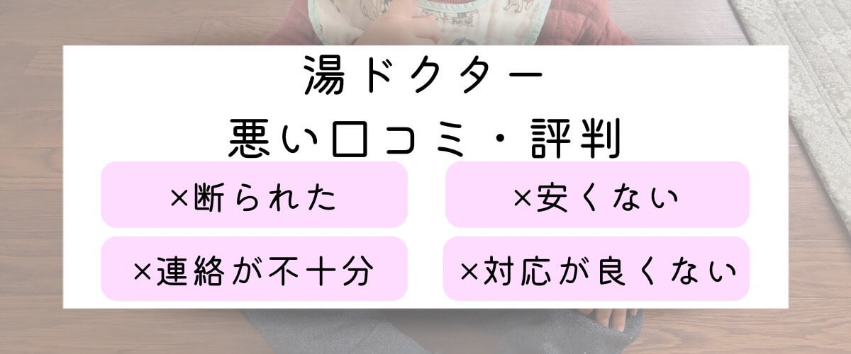 一部の職人や、事務員の対応が未熟な場合があるのも事実です。こういった声に対して、湯ドクターからは改善していくと返信しているものも見られたので、今後の企業努力にも期待したいところです。