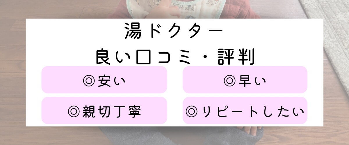 湯ドクターのサービスに関する良い口コミ・評判を、抜粋して紹介します。